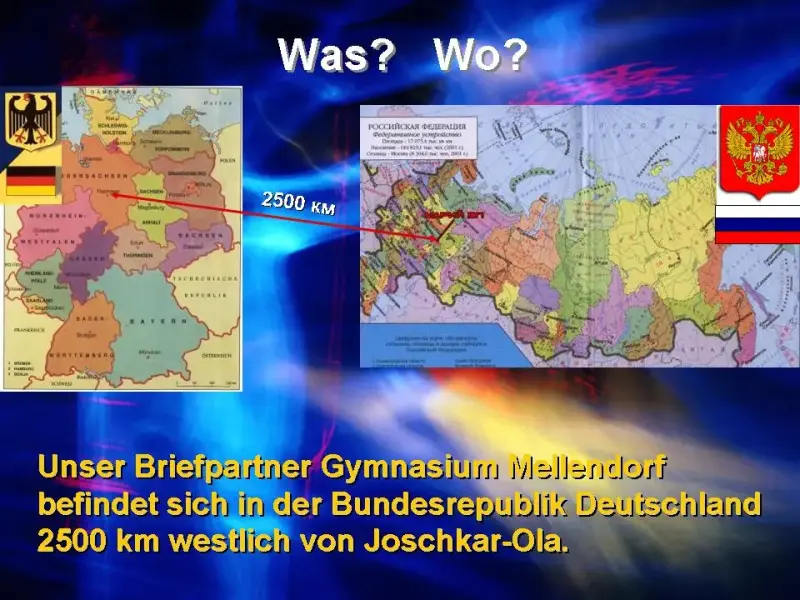 Unser Briefpartner Gymnasium Mellendorf befindet sich in der Bundesrepublik Deutschland 2500 km westlich von Joschkar-Ola.