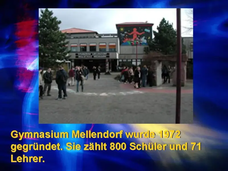 Gymnasium Mellendorf wurde 1972 gegründet. Es zählt 800 Schüler und 71 Lehrer.