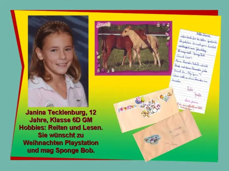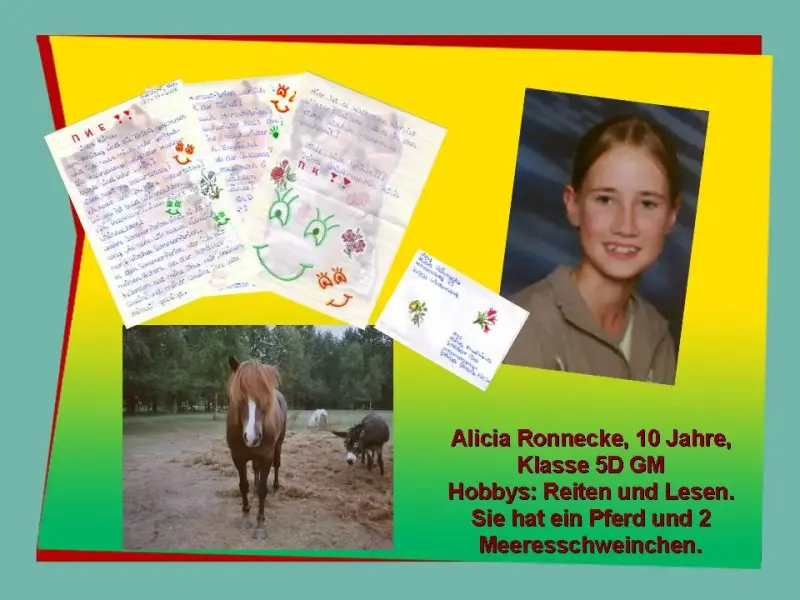Alina: Meine Brieffreundin heisst Alicia. Sie ist 11 Jahre alt und besucht die Klasse 6D des Gymnasiums Mellendorf.