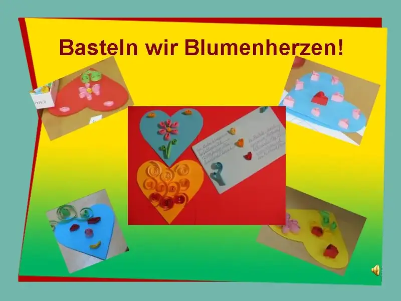 - Wollen wir Blumenherzen und Briefumschläge basteln!