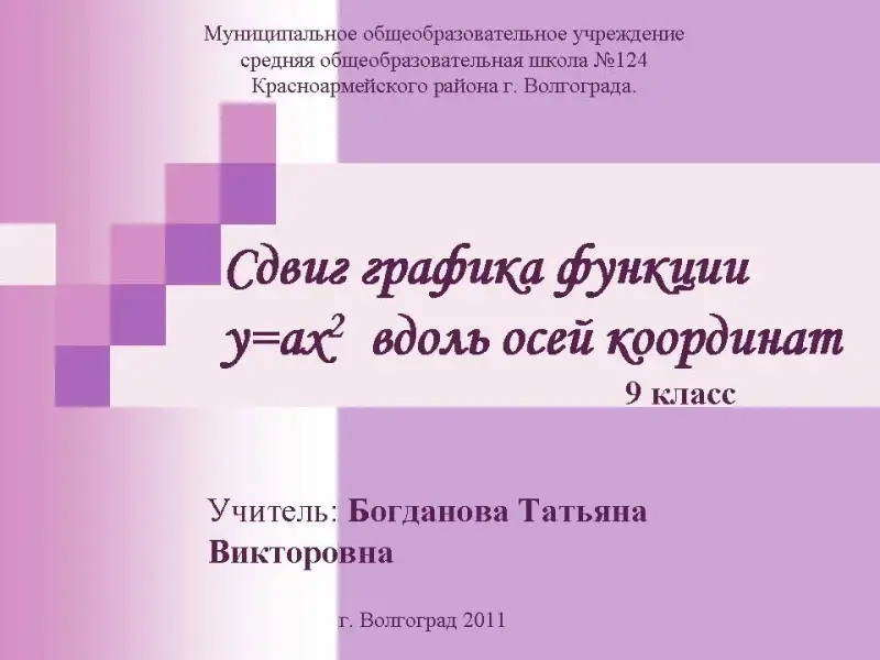 Урок алгебры в 9-м классе по теме "Сдвиг графика квадратичной функции вдоль осей координат "