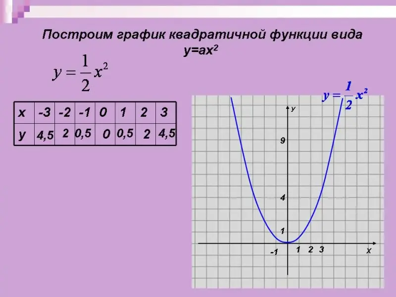 1. Задайте формулой функцию и запишите координаты вершины параболы.