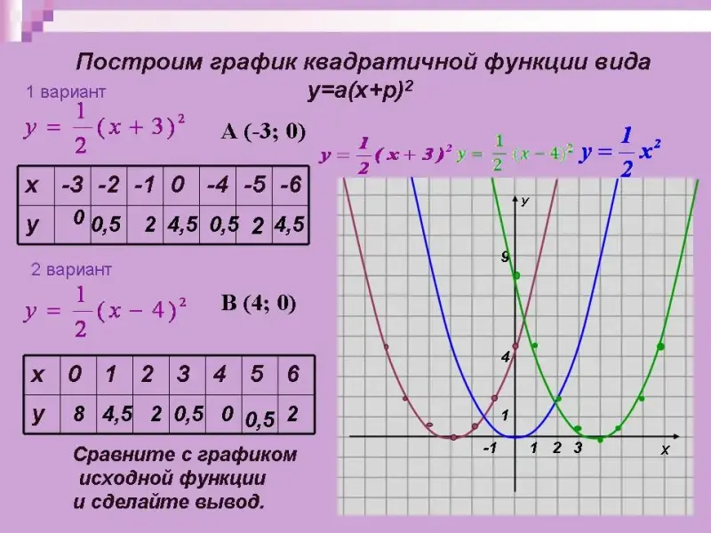 4. Учитель: Постройте график функции у = а(х + p)2: