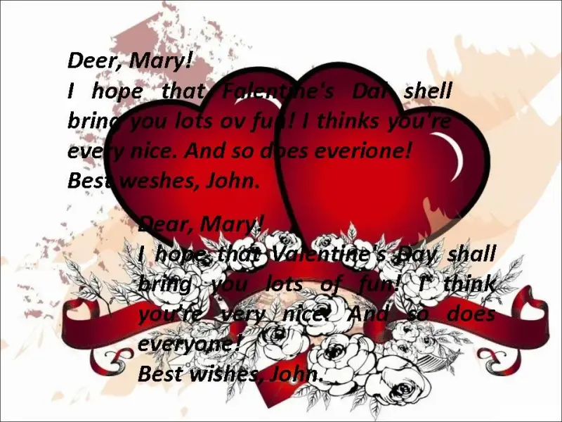 I hope that Falentine's Dai shell bring you lots ov fun! I thinks you're every nice. And so does everione!