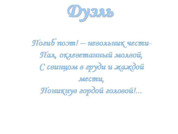 Гнев и возмущение русского общества выразил М.Ю. Лермонтов в стихотворении "Смерть поэта": (Рисунок № 10)