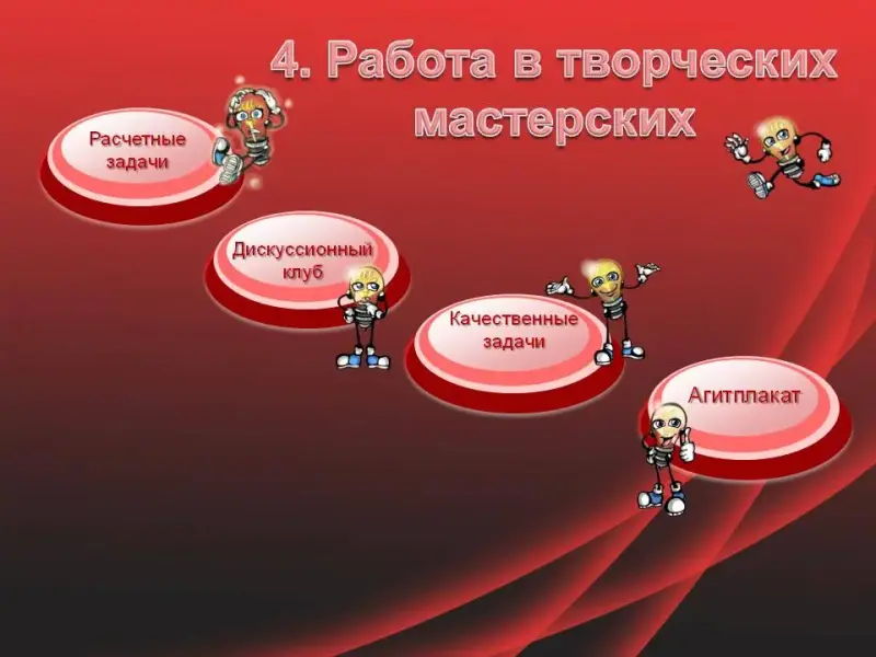абстрактных, а реальных знаний. Предлагается 4 творческие мастерские: