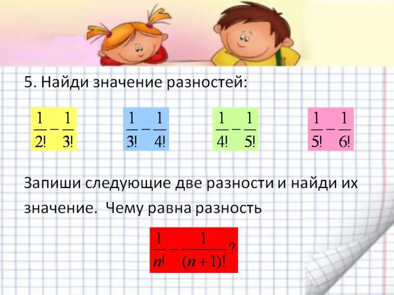 | 4. Итог | Итак, что такое факториал числа? | Отвечают на поставленный вопрос. |