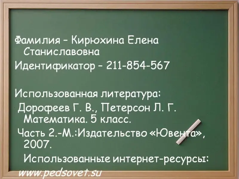 Дорофеев Г. В., Петерсон Л. Г. Математика. 5 класс. Часть 2.- М.: Издательство «Ювента», 2007.