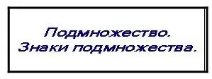 - сформировать представление о понятии "подмножество", способность к фиксированию подмножеств - графически и знаково, к чтению математической записи подмножеств;