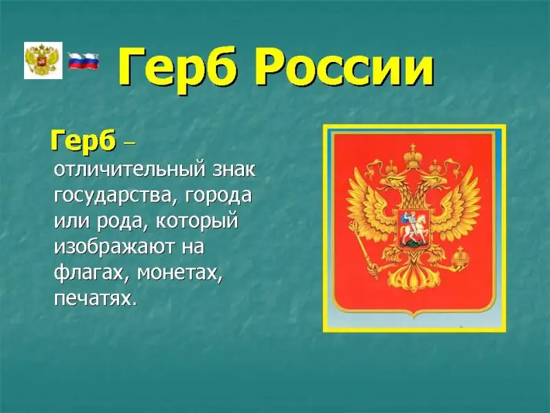 Герб - отличительный знак государства, города или рода, который изображают на флагах, монетах, печатях.