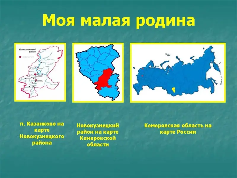 Да, действительно для нас малая родина - это поселок Казанково, который является частью Новокузнецкого района, а Новокузнецкий район в свою очередь является частью Кемеровской области.