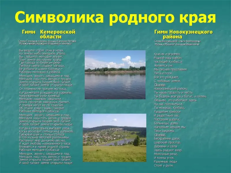 в) Прочитайте слова гимна Кемеровской области и Новокузнецкого района.