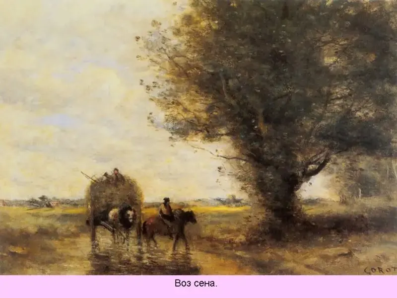 В пейзажах Коро редко встретишь борьбу стихий, ночной мрак, что так любили романтики. Он изображает предрассветную пору или грустные сумерки, предметы у него окутаны легкой дымкой, прозрачные
