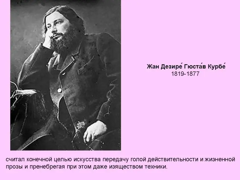 (1819-1877). Как справедливо писал Лионелла Вентури, ни один художник не вызывал такой ненависти мещан к себе, как Курбе, но ни один не оказал такого влияния на живопись XIX века. Он правдиво