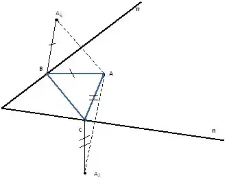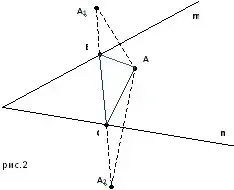 Строим точки А1 и А2 симметричные А относительно прямых m и n,