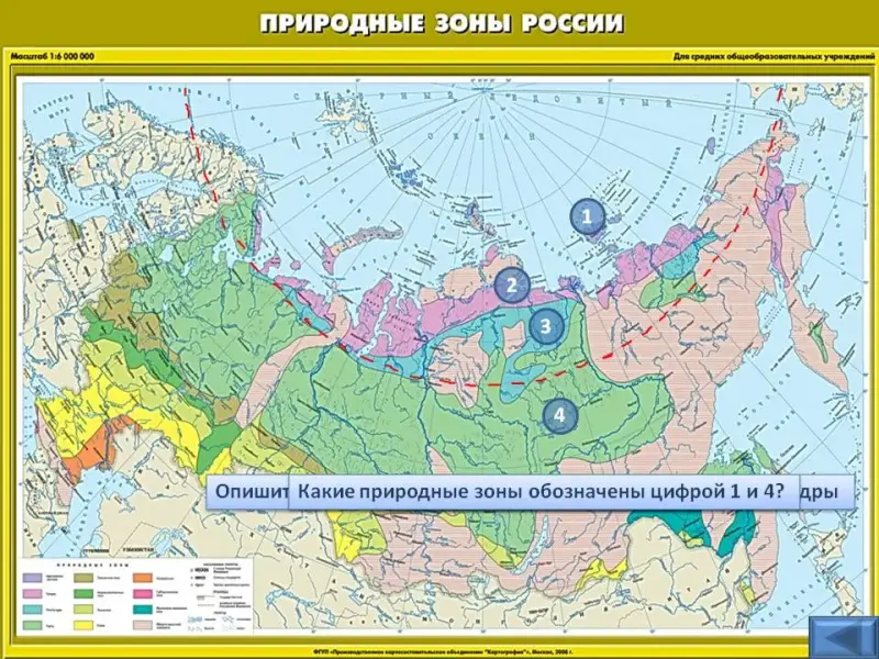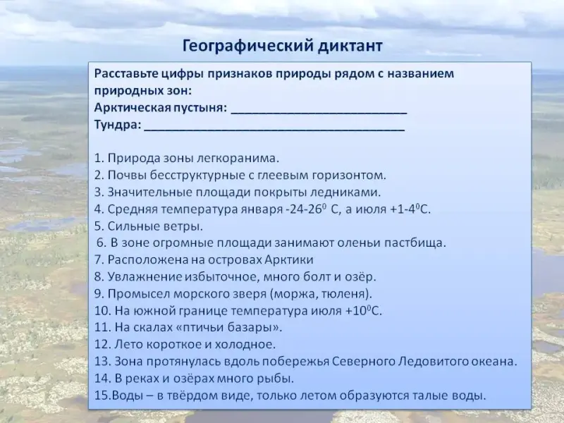 Расставьте цифры признаков природы рядом с названием природных зон: