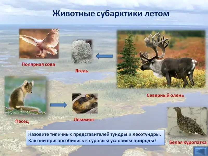 14-15 слайды. Посмотрите внимательно на животных субарктики.