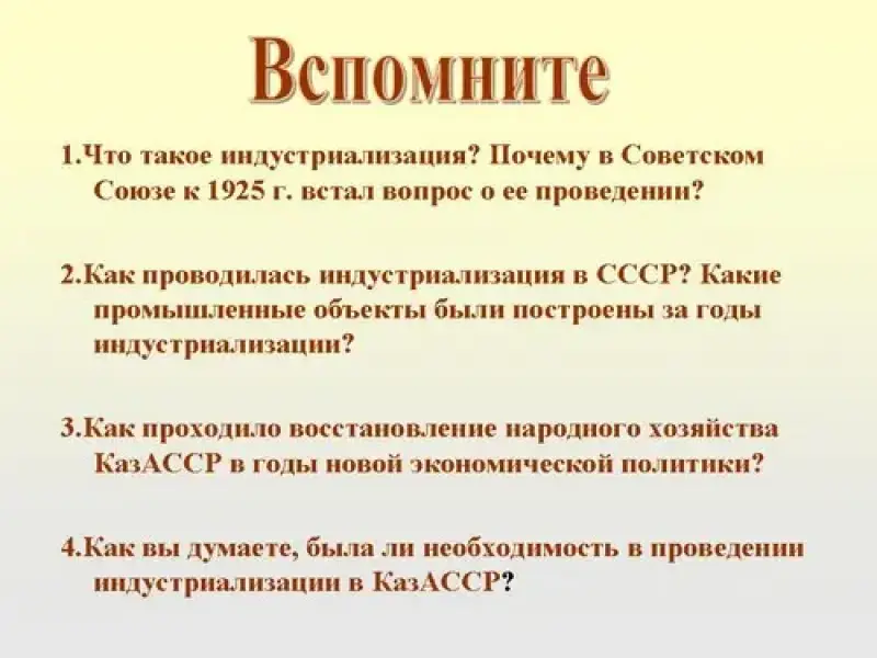 - Как вы думаете, была ли необходимость в проведении индустриализации в КазАССР?