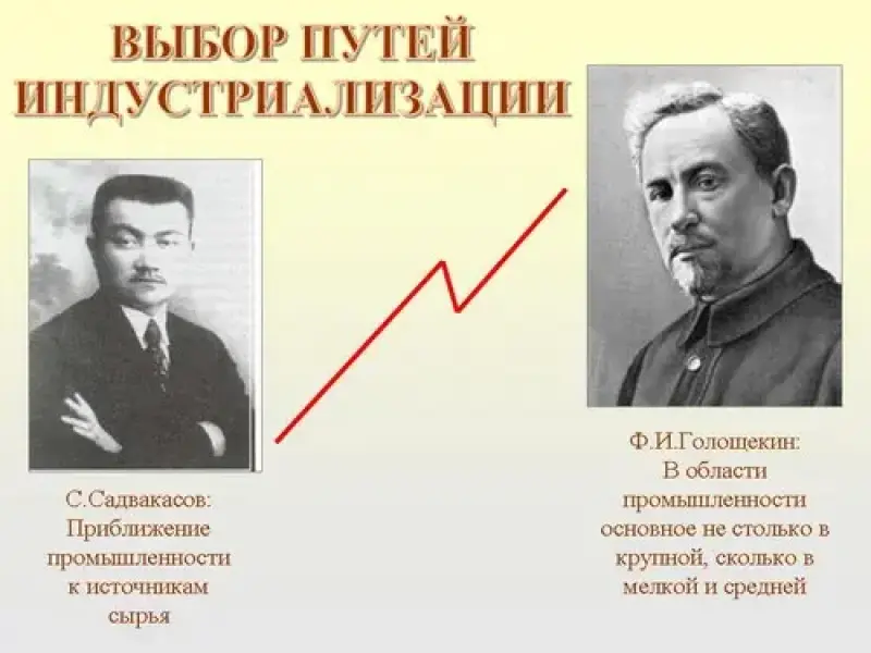 О выборе путей индустриализации Казахстана среди руководителей республики возник спор. Один путь был представлен первым секретарем Казкрайкома Ф.И. Голощекиным, получившим полную поддержку со стороны кандидата в члены Политбюро А.А.Андреева; другой путь отстаивал член бюро Казкрайкома С.Садвакасов.
