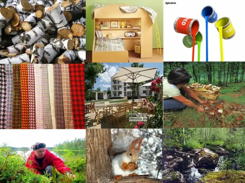 - мебель, бумага, ткани, лаки, краски
