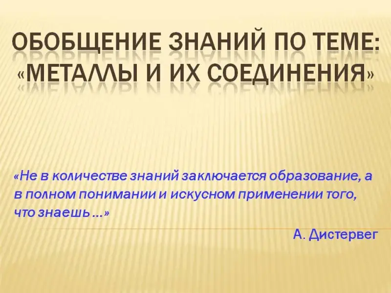 Цель урока: закрепить и обобщить изученный материал по теме «Металлы», научить учащихся использовать знания о металлах и их соединениях для решения практических задач.