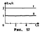 На рис.17 изображены графики скорости движения двух тел в зависимости от времени. Изменялась ли скорость тел в течение указанного промежутка времени? Скорость какого тела больше? Какое расстояние пройдет каждое тело за 5 с? Задайте формулой зависимость v(t) для каждого тела. Найдите путь, пройденный каждым телом за первые 6 с, постройте график зависимости S(t) для каждого из тел. Проанализируйте, как по графикам зависимости пути от времени определить скорость какого тела больше?