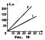 2. По графикам зависимости пути от времени, изображенным на рис. 19, определите скорость движения каждого из тел. Расскажите, что вы можете узнать о движении каждого тела, пользуясь графиком?