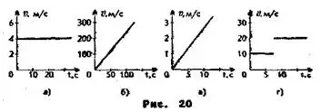 3. На рис. 20 изображены различные графики. Дайте название каждому графику и расскажите, что можно узнать о движении тел, для которых они были построены.