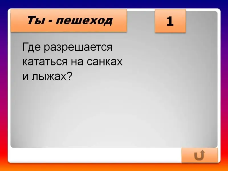 - Где разрешается кататься на санках и лыжах? (В специально отведенных местах)