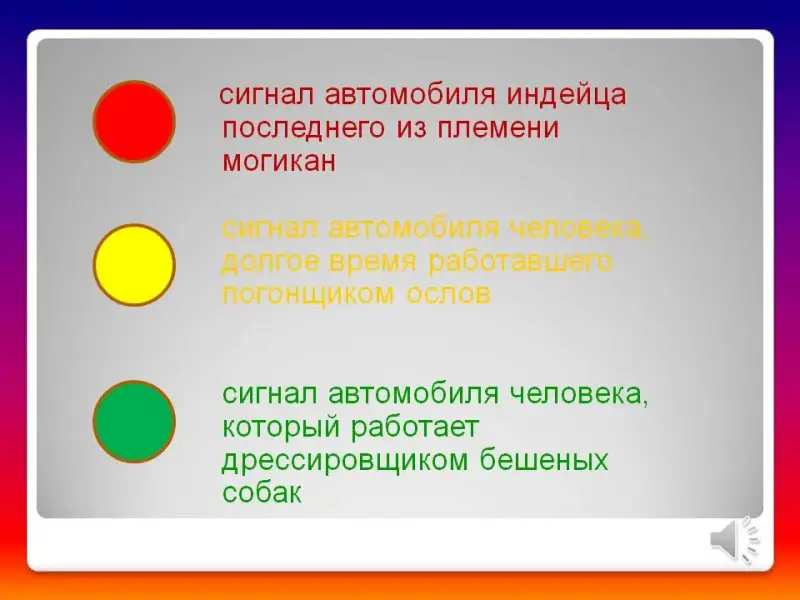 - сигнал автомобиля человека, который работает дрессировщиком бешеных собак (слайд 34 -35)