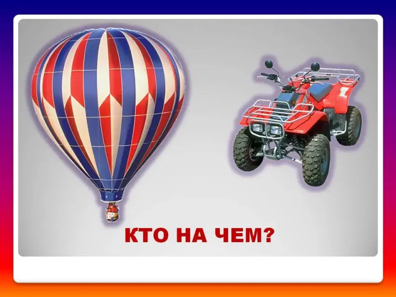 Ведущая: В жизни бывает так, что не только автомобиль, но и другие предметы могут служить транспортным средством. Какие, сейчас определим.