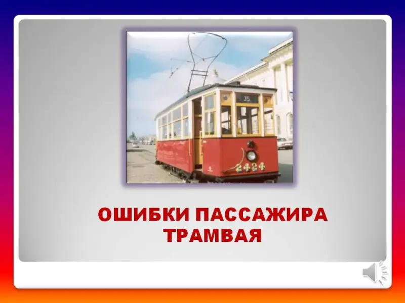 Вам предлагается, прослушав фрагмент песни, указать на ошибки, допущенные пассажиром трамвая.