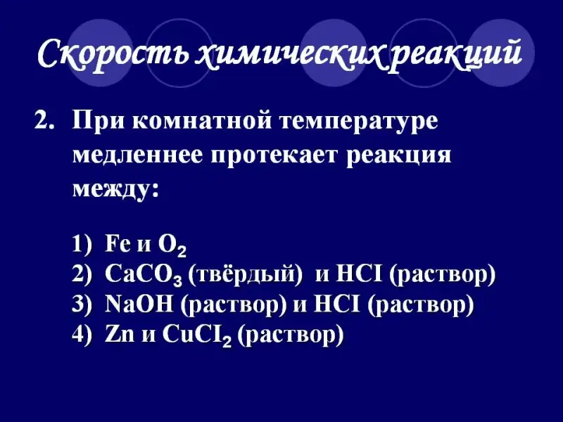 Ответ: 1. - При комнатной температуре медленнее протекает реакция между: