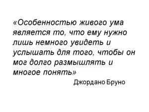 «Особенностью живого ума является то, что ему нужно лишь немного увидеть и услышать для того, чтобы он мог долго размышлять и многое понять». Джордано Бруно