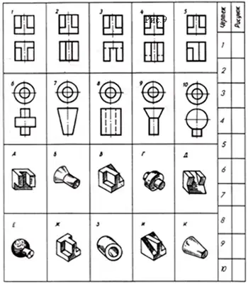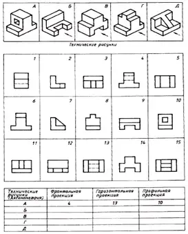 Работа по таблице: определить к какому чертежу, обозначенному цифрой, соответствует рисунок, обозначенный буквой.