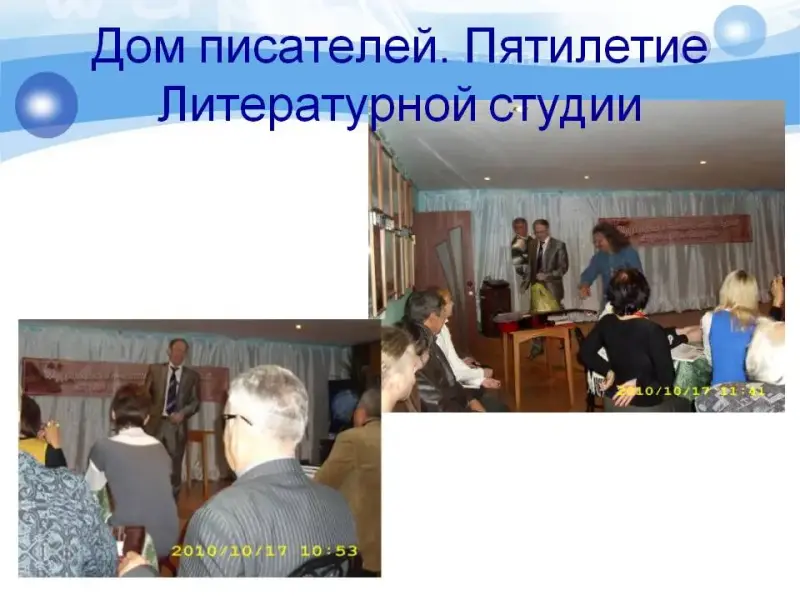 (на слайде 17 Конюхова Юлия и Хабибулина Анна «примерили» места руководителя литературной студии Сонина С.С. и его помощника Володина В.Н.).