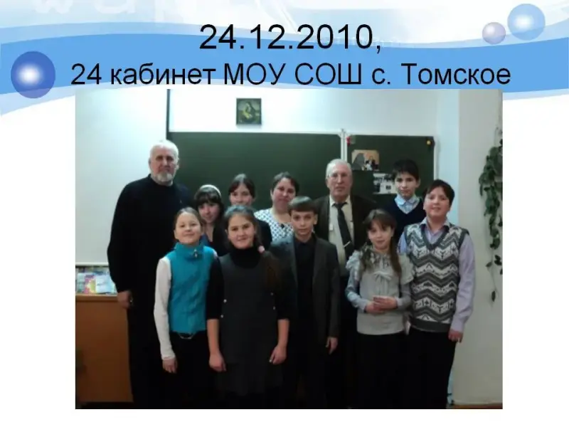 Стали уже традиционными наши встречи с известным даже за пределами Амурской области человеком - депутатом Амурского законодательного собрания четырёх созывов, руководителем общества трезвости «Соратник» публицистом и поэтом Николаем Трифоновичем Дегтярёвым. Познакомились мы с ним ещё два года назад, а в этом году он приезжал к нам перед Новым годом и показал фильм «Заплыв-2008: Албазино - Благовещенск». На этой встрече он подарил кружковцам свои книжечки «Русская баня» (слайд 6).