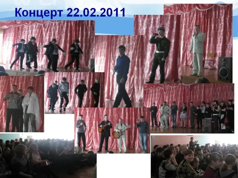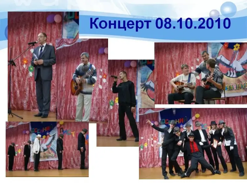 Концерты, которые провёл бард из Белогорска Володин Владимир Николаевич и которые видела почти вся школа, были организованы по инициативе нашего кружка «Лира» (слайды 9-10).