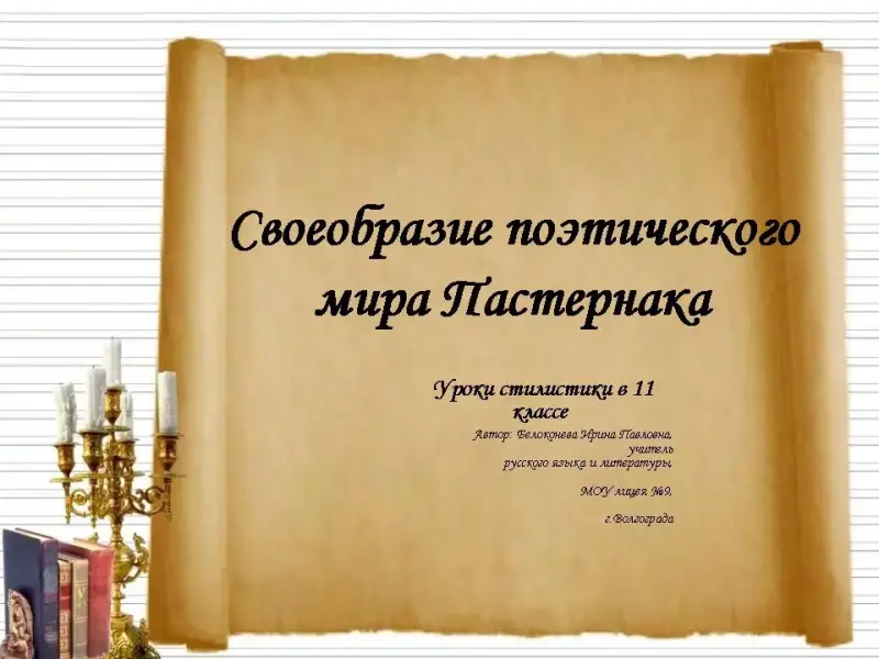 Оборудование. Презентация "Своеобразие поэтического мира Пастернака".