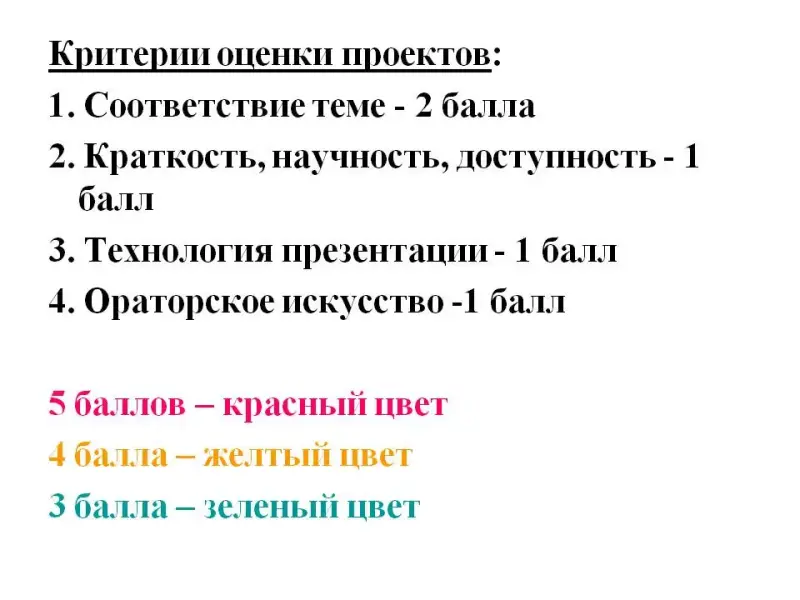 5 баллов - красный цвет 4 балла - желтый цвет 3 балла - зеленый цвет