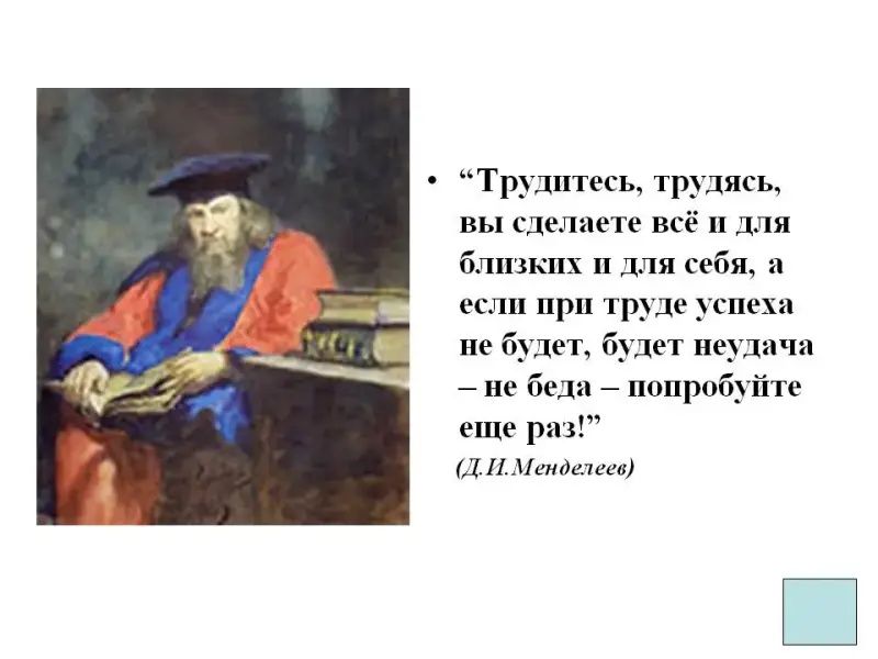 (Слайд № 41) «Наука только тогда благотворна, когда мы ее принимаем не только разумом, но и сердцем» Д. И. Менделеев