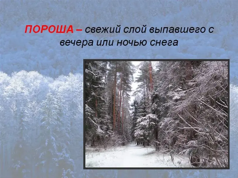 У.: Что же такое пороша? Давайте уточним значение этого слова.