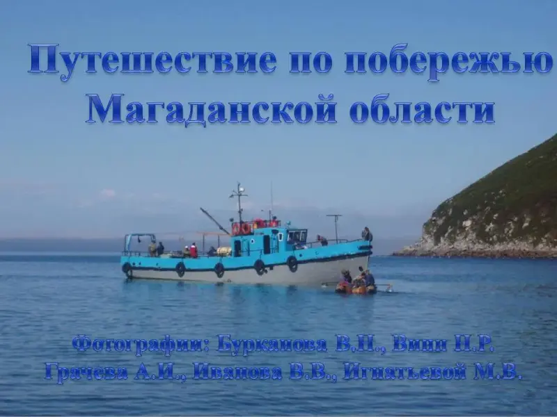 СЛАЙД 2. Береговая линия побережья Охотского моря составляет 10 460км. В путешествии по побережью Магаданской области мы познакомимся с его обитателями и их жизнью в разные сезоны года.