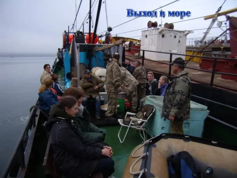 СЛАЙД 4. Выходим в море, погода отличная, через морские ворота одолеваем мыс Чирикова.