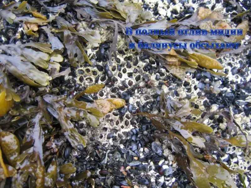 СЛАЙД 17. В Охотском море самые большие отливы. Море отходит от берега до нескольких сотен метров. В момент отлива, на литорали можно увидеть много интересного.