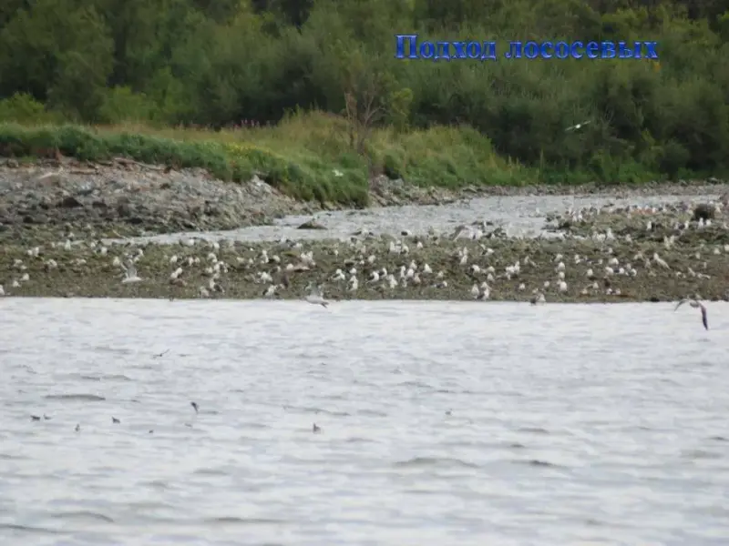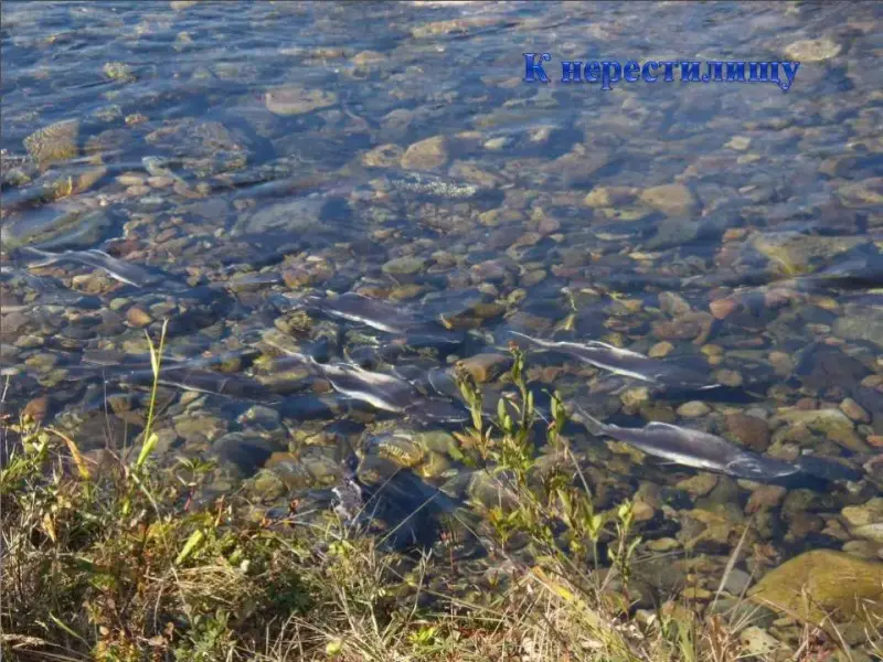 СЛАЙД 24. Из моря в устья рек устремляются разные виды тихоокеанских лососей. Несколько лет они не подходили к берегам, нагуливались в Тихом океане. Пришло время для выполнения главной и единственной цели - продолжить свой род.