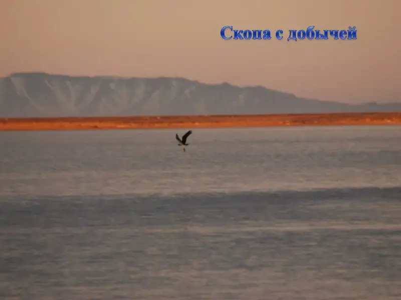 СЛАЙД 29. На закате в лимане и возле устья рек можно наблюдать, как охотится скопа. Это хищная птица весом до 1,5кг настоящий рыбоед.