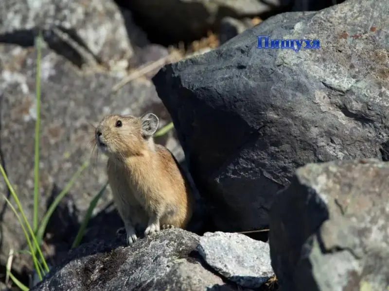 СЛАЙД 33. Пищуха (из отряда зайцеобразных) мелькает среди камней. Она запасает траву, веточки все лето в «стожки», поэтому ее иногда называют «сеноставкой».