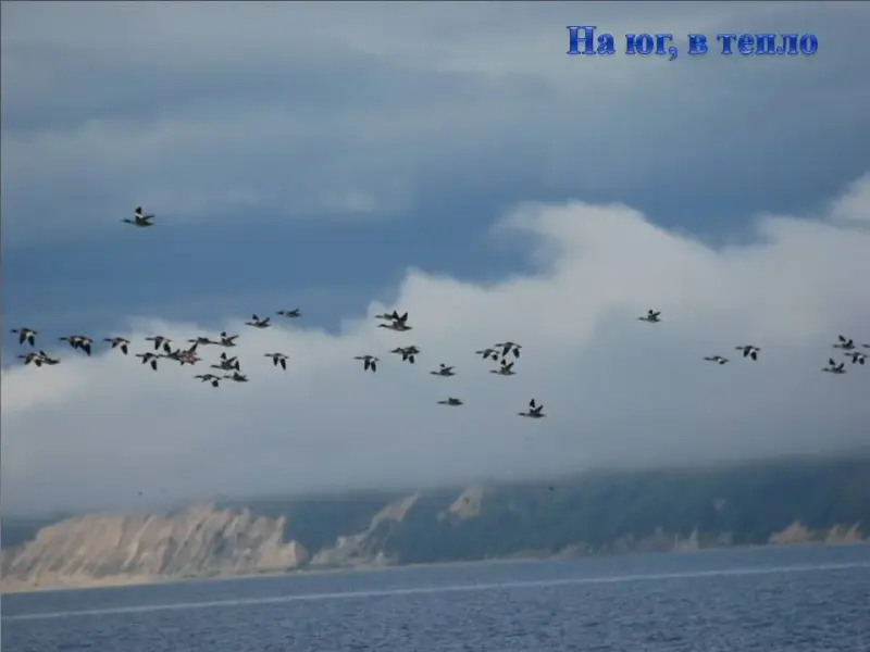 СЛАЙД 41. Птицы собираются в стаи, скоро предстоит путь в теплые края.