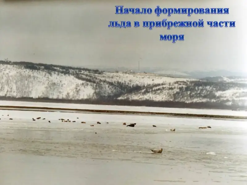 СЛАЙД 45. Море затягивается льдом. Начинается зима.